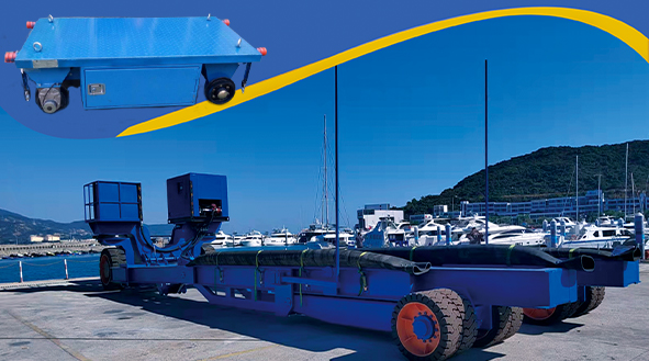 65T重型游艇拖車(chē)是由佛山南工車(chē)輛制造有限公司研發(fā)團(tuán)隊(duì)研發(fā)生產(chǎn)的一款重型游艇拖車(chē)。拖車(chē)可實(shí)現(xiàn)自行走、轉(zhuǎn)向、升降、水平調(diào)整以及寬度調(diào)節(jié)功能。通過(guò)自身行走舉升等功能,托舉起游艇在指定的區(qū)域內(nèi)轉(zhuǎn)運(yùn),以及在碼頭區(qū)域?qū)⒂瓮乃嫱现涟渡希驈陌渡蠈⒂瓮н\(yùn)送至水面。應(yīng)用場(chǎng)合:應(yīng)用于游艇俱樂(lè)部、旅游基地、游艇制造廠、船廠等。